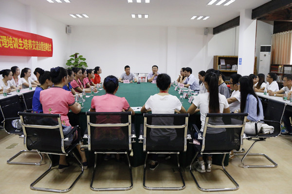 此次交流会由千古情行政人事部杨艳兰经理主持。她简单的介绍了这次交流会的主要流程,然后是实习生和老师们的相互交流。交流会开始,我院柴院长首先感谢千古情给我院实习生提供工作机会,希望实习生能更好的走向企业,能像蝴蝶一样经历破茧之痛就可以更好的成长,让他们能在工作中积累更多的经验。接着,王经理也介绍了一些三亚千古情的发展情况,希望实习生毕业后也能加入千古情。因为现在宋城集团能实现异地实习,全国就业,所以也不用有留在三亚还是回家乡的纠结担心。然后我院实习生说了一些在千古情工作的感受,无论是票房部、接待部还是游乐部,他们都觉得千古情给他们很温暖的感觉。在实习将近4个月的时间里他们都改变了很多。以前他们都很害怕和游客交流,但是现在他们学会了主动和游客说话,也会主动去学习一些技能和去询问一些老员工自己不懂的地方,在不知不觉中有了很大的改变。