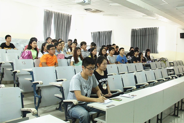 同学们在七仙岭球会宣讲招聘中认真听讲