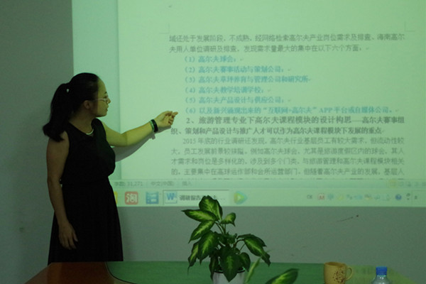 第九届旅游嘉年华高尔夫知识技能竞赛已在上个月圆满结束。为配套赛事活动,2016年5月4日下午四点,9159金沙游戏场高尔夫专业老师在南区办公楼小会议室举行了高尔夫学术沙龙,高尔夫专业主任吴兰卡老师主持本次沙龙。