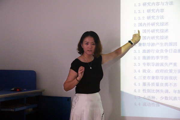 其次,王秋娜老师介绍了论文绪论的格式,包括选题背景、研究意义、研究内容与方法以及国内外研究综述,详实地说明了绪论的具体格式。接着,王老师对问卷调查进行了讲解,强调其是一个找到问题、分析问题和解决问题的过程,实质在于问题的分析,并列举三亚千古情、邮轮消费认知等例子,强调了资料收集与整理的重要性。在目录的格式上,王秋娜老师也做了细致的讲解,介绍了目录格式基本的三级标题形式与目录用语的注意事项,如同级目录的整齐对称,使用规则的短语,大标题的概括性与小标题的具体性,言简意赅,让同学们熟记于心。随后,王老师同学们展示了一篇开题报告范例并分析了报告的格式与报告具体框架,细心指导同学们的开题报告写作。同时还需要注重论文的理论意义与现实意义,王老师强调同学们应站在巨人的肩膀上创新,运用新的视角与研究方法,为自己的论文增色。