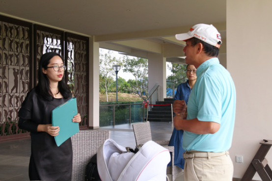 首先,李斌老师为老师们讲解了进入球场的穿着和礼仪。进入球场,必须穿合适舒服的运动鞋,运动裤以及polo衫。如果穿牛仔裤,衬衫,凉鞋则表示不尊重的意思。希望老师们提出意见,为此来规范今后体验高尔夫学生的服装要求。