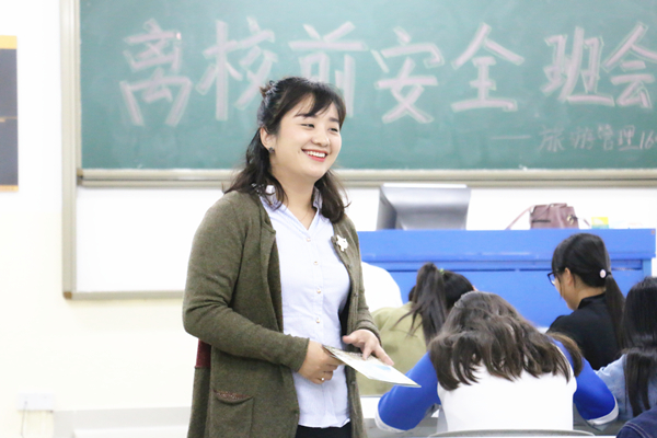 为了让同学们以一个良好的心态迎接大学里的第一个期末考试并且过一个充实快乐有意义的假期生活,我院思想导师石玲老师于1229日下午19:00在书知楼2106教室为旅游管理1602班的同学召开了“离校前安全”的主题班会。