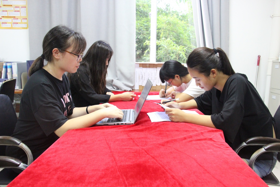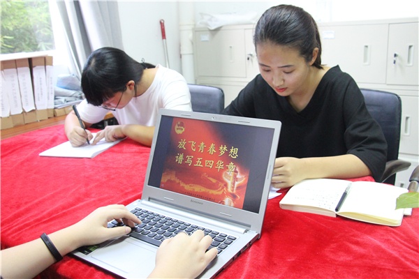 五四表彰大会最重要的是对优秀集体和优秀个人进行表彰,而对于这些申报人员的的材料,团委办公室干事进行了仔细地审核。不管是学业成绩、志愿时长,还是考勤成绩等,都一一认真检查,努力做到每份材料没有任何错误。于是,教室、办公室、党员活动室,随处都能见到审核材料的人的身影,任何地方,都是他们的办公地点。除此之外,为了让表彰大会内容更加丰富完善,我院团委各部门还拍摄了视频。为了让视频达到最好的效果,我们筛选了一次又一次。最后拍摄的那一次,即使下着雨,也无法阻挡团委所有人想要完成任务的决心。