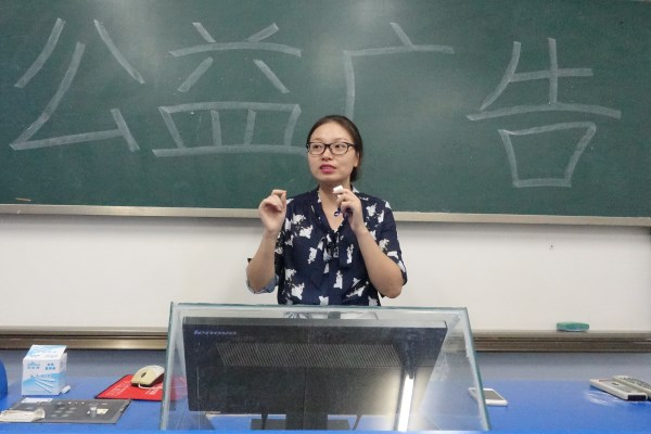 随后蒋老师介绍到公益广告最早出现在20世纪40年代初的美国,亦称公共服务广告、公德广告,是为公众服务的非盈利性广告。中国通过电视媒体播出公益广告,最早出现的是1986年贵阳电视台摄制的《节约用水》。之后,1986年10月26日,中央电视台开播《广而告之》栏目,公益广告虽然不必像商业广告那样一字千金,公益广告却以极强的亲和力在倡导健康的社会风尚。用心品味,委实令人心悦诚服。