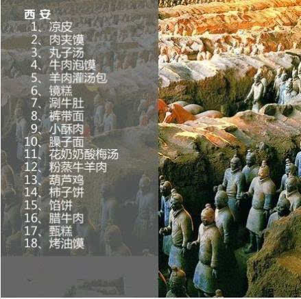 西安历史文化底蕴深厚,同时也是时尚的现代化大都市。有历史感的古城墙和壮观雄伟的兵马俑,其中钟鼓楼后面的回民小吃街,绝对是让你流连忘返的好去处哦!