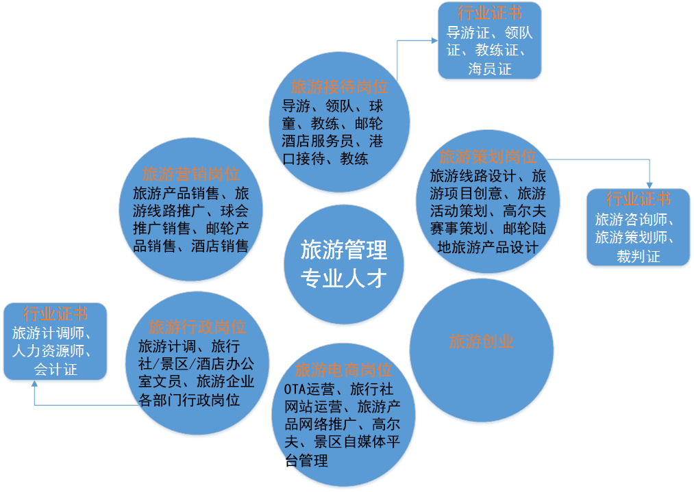 本专业培养适应社会主义现代化建设和市场经济需要,德育为先,德、智、体、美全面发展,系统掌握旅游管理专业的基本理论、知识和技能,具备一定的人文素养和较高的职业道德,具有较好的英语水平、沟通能力、实践能力、创新能力,熟悉市场运行机制和规则、国内外旅游业发展状况和趋势,具有旅游特色和国际视野,能够胜任国际邮轮、星级酒店、高尔夫球会、旅游景区、旅行社等各类旅游企业、以及各级旅游行政管理部门的服务、管理岗位,具有创新精神、实践能力、健康人格的应用型人才。