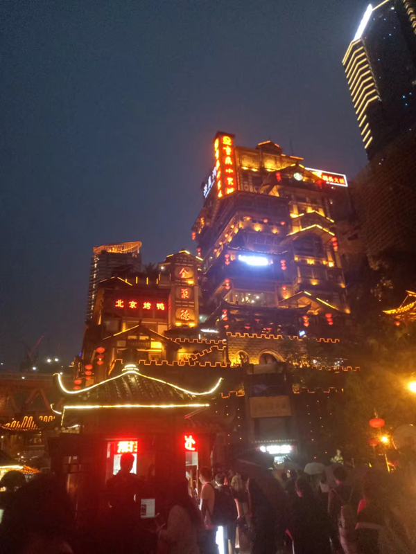 晚上的时候我们去了十分美妙的洪崖洞,这里是一幅流动的画,是一帧立体的景,山城夜晚,所有焕发出的生机与动感,比白日里更加的闪耀迷人。撩人遐思,动人心魄。这般梦幻的夜景实在是为重庆山水添加了美妙的一笔。