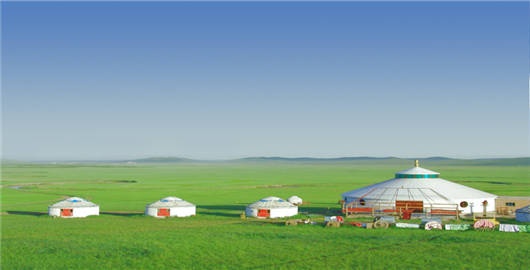 经过五个小时的旅途颠簸,坝上草原终于呈现在眼前,原本困得一直打瞌睡的自己,看到这一望无际的草原时也立马精神了起来。坝上草原如一幅优美如诗的画卷在眼前铺展开来,它是那样的朴实无华、清新自然、尽情地坦露自己的美,绿草如茵、一望无际,远处的山峦此起彼伏、若隐若现。近处有成群的羊在吃草,间或看到马或牛也如棋子一般零星的散落在绿色的棋盘上,都是一副安适、悠闲的情景,白色的蒙古包在蓝天下格外的耀眼,一幅生动的草原生活图,真可谓悠哉、游哉!阳光虽然有些刺眼,但是有风从远处吹来,感觉适意的凉爽。我喜欢这里,这里远离城市的喧嚣,能让浮躁的心安静下来,望着一望无际的大草原,感觉整个世界都安静了。