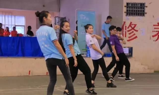 ▲正在欣赏舞蹈表演的陆校长以及表演的学生干部