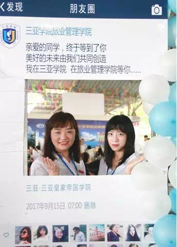 幸好,幸好台风下午就彻底走了,让我们的精心设置走入你们的眼帘。你看,我们的朋友圈kt板,粘上了胶布,好多新生和老师都能在这里合照。