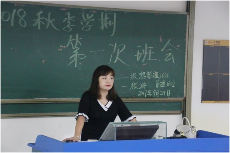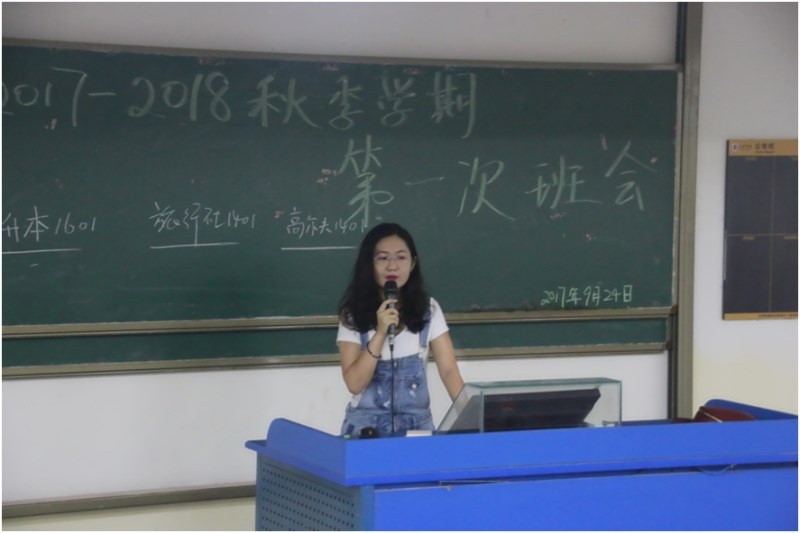 241930分,思想导师李湘婷于2108教室主持2018秋季安排第一次班会,本次会议有我院专升本1601、旅行社1401和高尔夫1401班全体同学到场参与。李湘婷老师在会议上除强调内容包括学生在校行为准则,强调校规校纪之外,还格外强调毕业实习的安排,实习报告的要求,以及最后一年需要准备和参加的演讲、招聘会等事宜。时刻保持对自己的严要求,保持自己的求学、好学之心,认真完成最后一年的学习内容。
