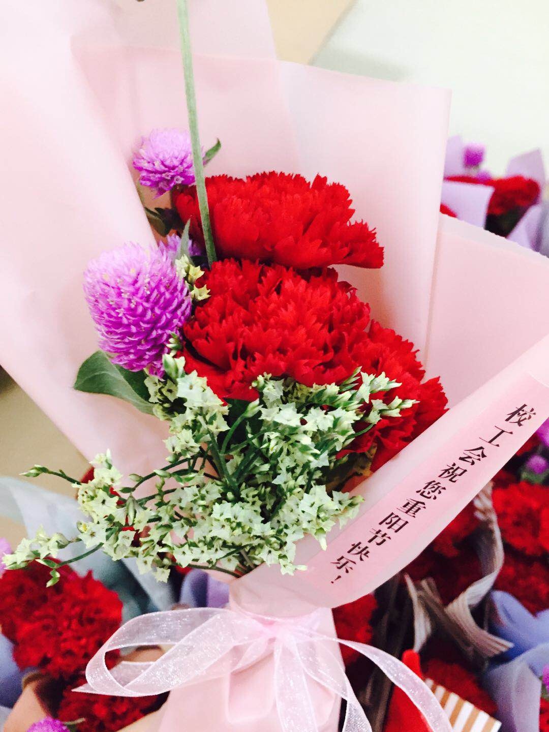 在重阳节前一天,校工会向每一位老教师们敬上了美丽的康乃馨并附上美好祝愿:校工会祝您节日快乐!此外,三亚理职烹饪系师生精心制作了甜美的糕点作为节日祝福赠予老教师。这些看似简单的礼物包含了全体师生对依旧奋斗在教育一线老教师们最真诚的祝愿。