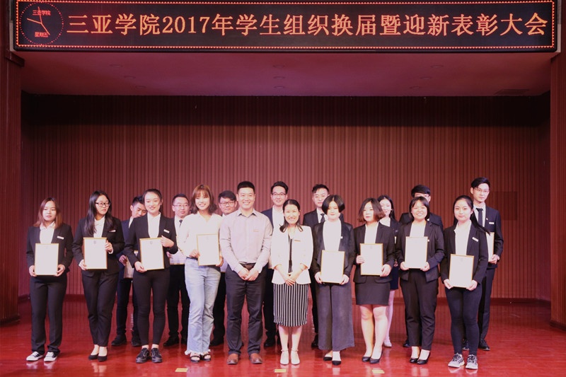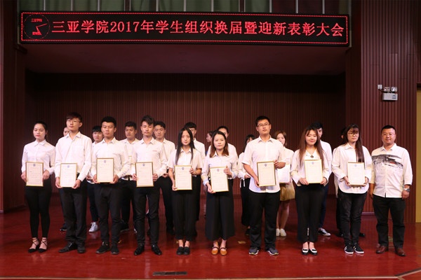 然后,会议进入第二项,主持人宣读迎新表彰文件和2017迎新“突出贡献”奖、“先进个人”奖获奖名单,邀请王喜鸿书记、王翔书记分别为获奖人员颁奖并合影留念。