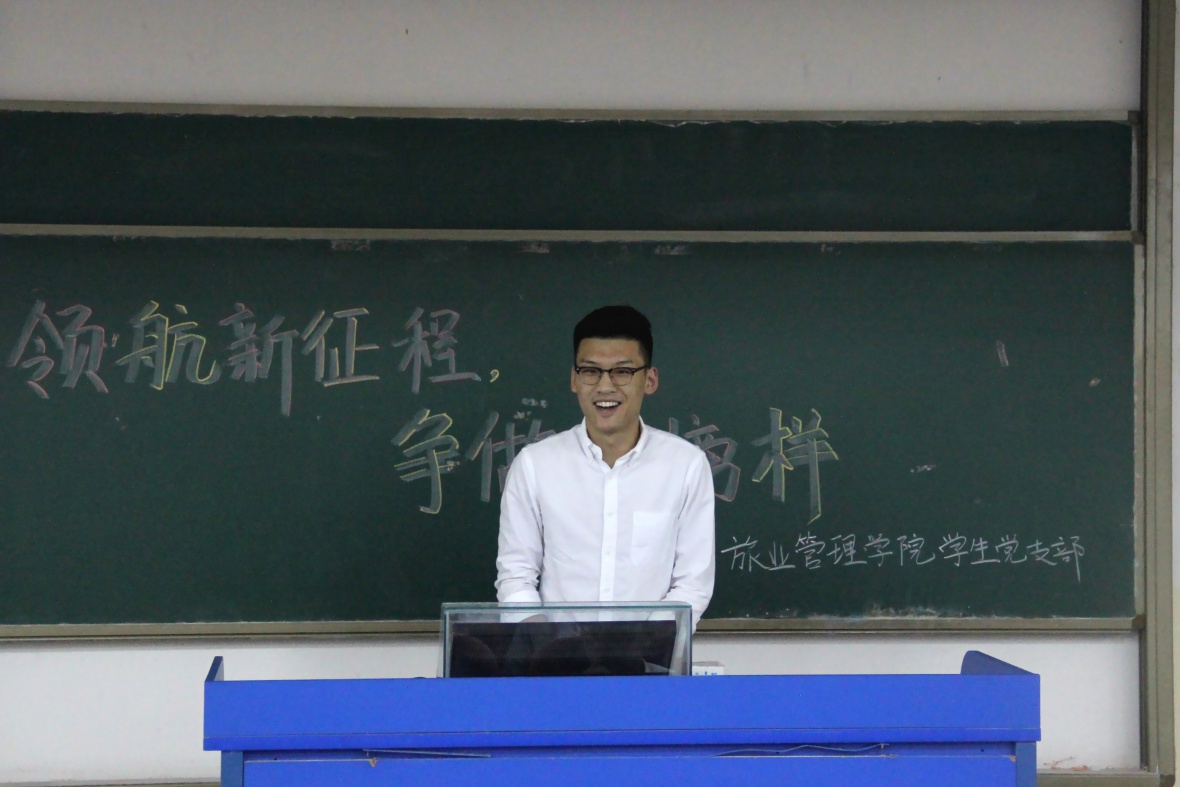 首先,由学生党支部负责人李中昊向在场的各位介绍了旅业学院学生党支部的发展历程。大家共同观看了《领航》与《榜样》两部宣传片。宣传片生动诠释了中国共产党人坚定理想信念、为民实干担当、勤勉敬业奉献的精神风采。习近平总书记用“雄关漫道真如铁”、“人间正道是沧桑”、“长风破浪会有时”三句诗,来分别概括中华民族的昨天、今天和明天。