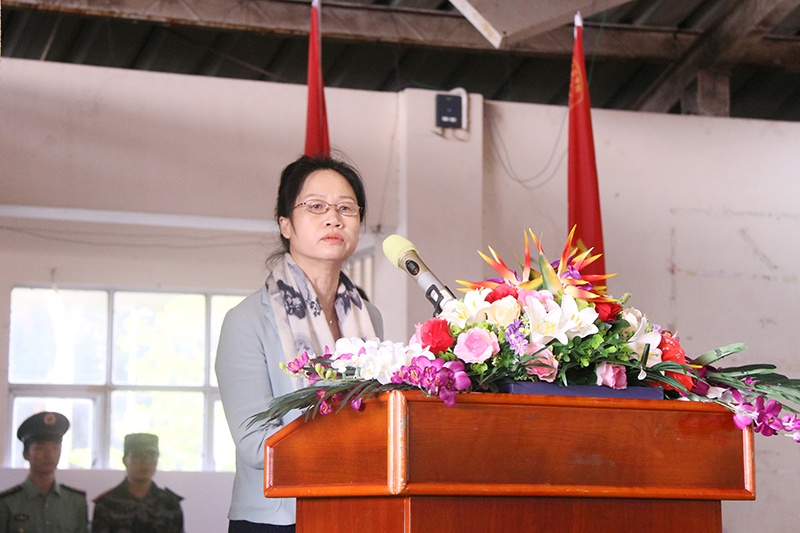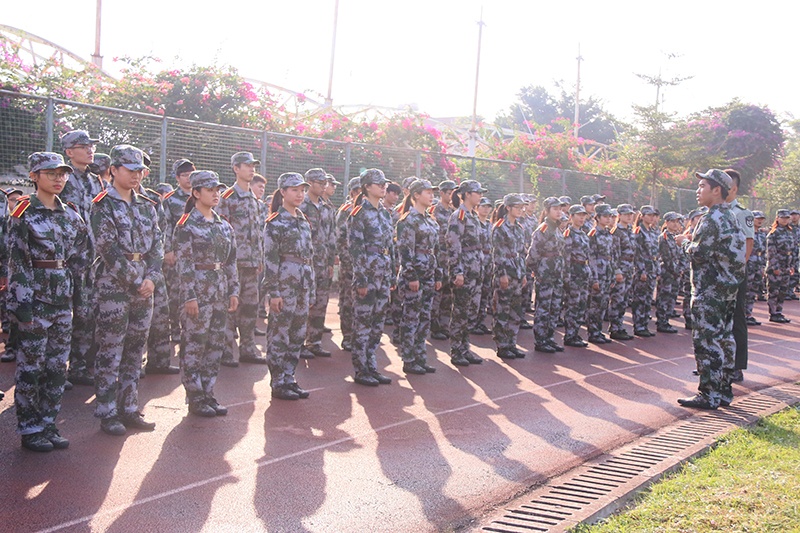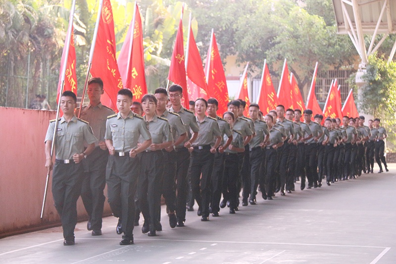 首先,洪艺敏副校长向指导本次军训的学生教官和参训学生致辞。讲道:军训是大学生接受国防教育,培养爱国主义精神的重要形式,也是培养高素质人才的重要任务;希望全体学生教官、带训思想老师及学生干部提高认识,重视本次军训工作,切实将“科学训练、保证质量、纪律严明、文明带兵、规范管理、安全至上、以人为本、关心互助、周密安排、精心服务”的总体要求贯穿于军训工作的始终。以高度负责的精神、以忘我的工作态度、科学的施教方法,保质保量完成此次军训任务;希望全体参训学生树立高度的荣誉感、责任感、使命感,以饱满的热情和高昂的斗志投入训练,严格遵守纪律,虚心向教官学习,树立安全意识。