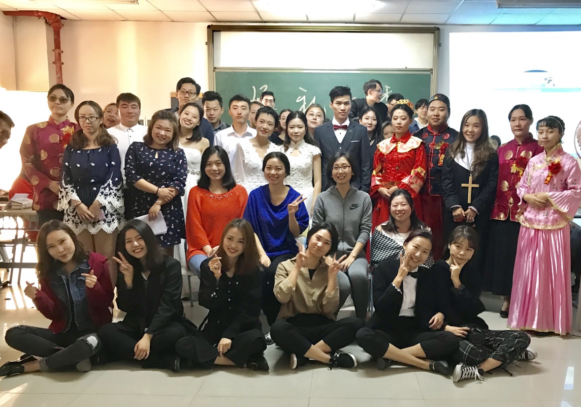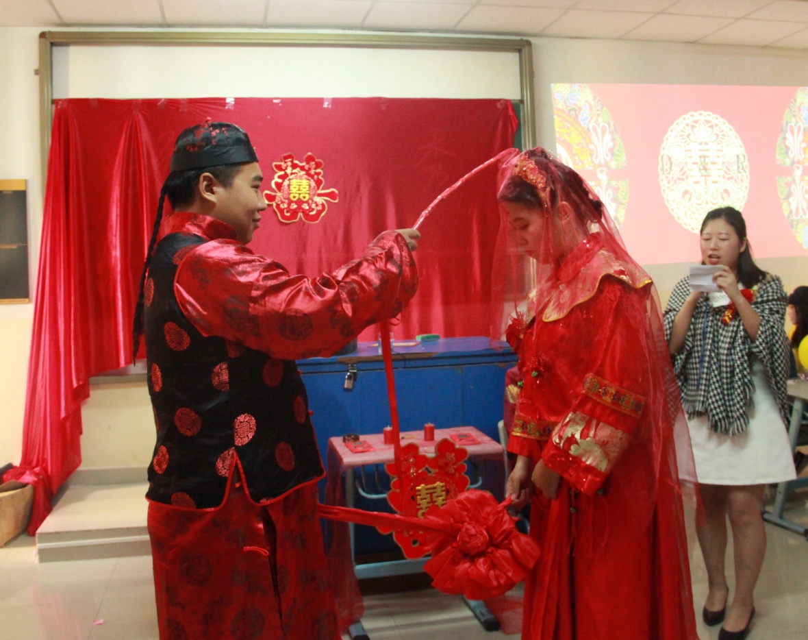 12月18日上午10点,书知楼2102教室便进行了一次别开生面的结课考试。我院会展专业的蒋倩老师让学生们组成小组进行婚礼策划,并让每一个小组就策划方案进行婚礼表演,其中培养的不仅是前期学生的策划能力,更有现场的实际操作以及对各种状况的应变能力。参与此次婚礼表演的还有我院会展专业朱俭、卢新新老师。