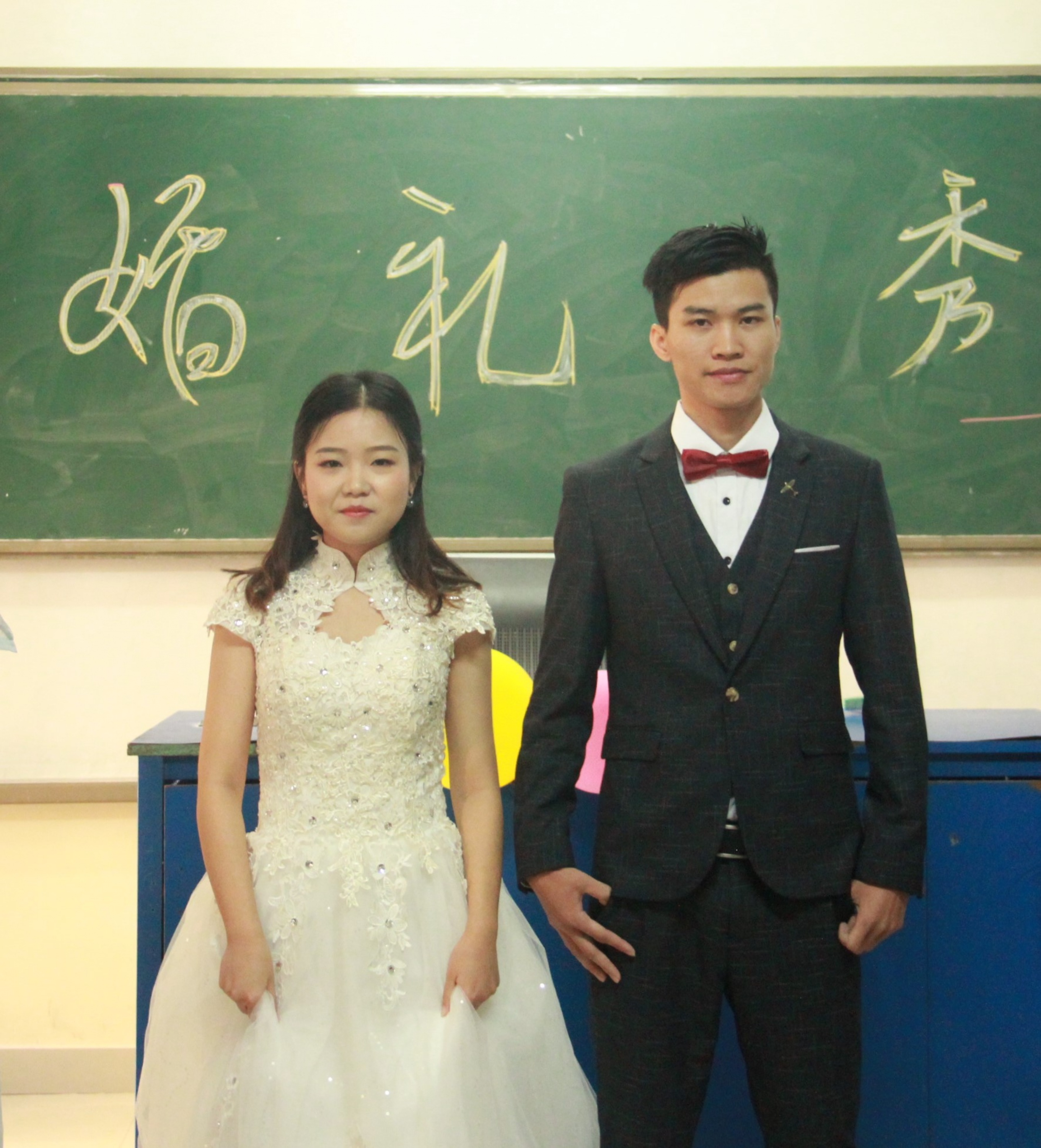 会展1401班的学生们分为了9个小组,本次课程进行表演的是其中的四组同学。其婚礼形式涵盖了中西式,其时间纬度更是横跨古今,表演的四组同学有两组现代西式婚礼,一组古代婚礼,一组近现代婚礼。
