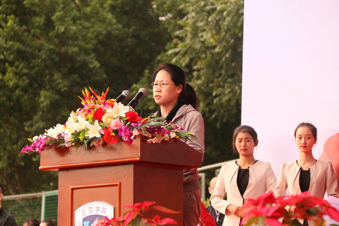 方阵行过,副校长洪艺敏做军训总结并致辞。她表示,“在过去的两周里,9159金沙游戏场2017级新生,经历并完成了大学生活中一项有意义的考验——军训。今天,9159金沙游戏场又迎来了9159金沙游戏场、三亚理工职业学院一年一度最受瞩目的校园文化活动——体育狂欢节。在未来的两天里,希望同学们在这里一起挥洒汗水,一起追风奔跑,一起呐喊助威,一起纵声欢笑,释放青春的本真色彩。”