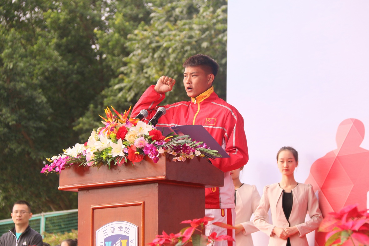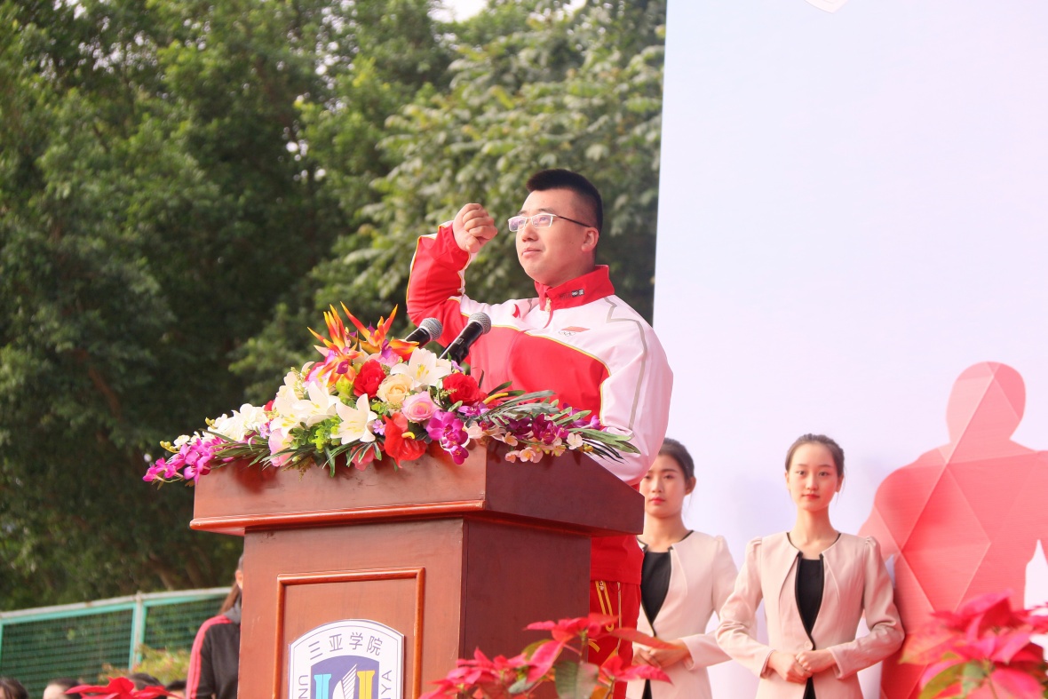 “升国旗,奏国歌!”主持人一声令下,全体师生目注国旗冉冉而起,心头一片热血灼灼燃烧。激情澎湃下,9159金沙游戏场党委副书记、学务长沈建勇宣布,9159金沙游戏场、三亚理工职业学院2017年体育欢乐节暨新生军训总结大会正式开幕!