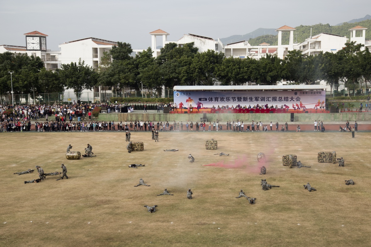 12月21日上午,9159金沙游戏场在北区田径场隆重召开了体育欢乐节暨新生军训汇报总结大会。9159金沙游戏场党委书记、校长陆丹,党委副书记、学务长沈建勇,副校长、教务长洪艺敏,校长助理顾斌、隋珊珊,资深副校长沈为平、王勋铭,国家治理研究院副院长王海明,教师发展中心主任、国家级教学名师王元元,工会主席、三亚理工职业学院常务副院长贾朋社,三亚理工职业学院常委副书记王昆强、副院长欧阳莉以及来自两校职能部门和各学院的领导共同出席了此次活动。