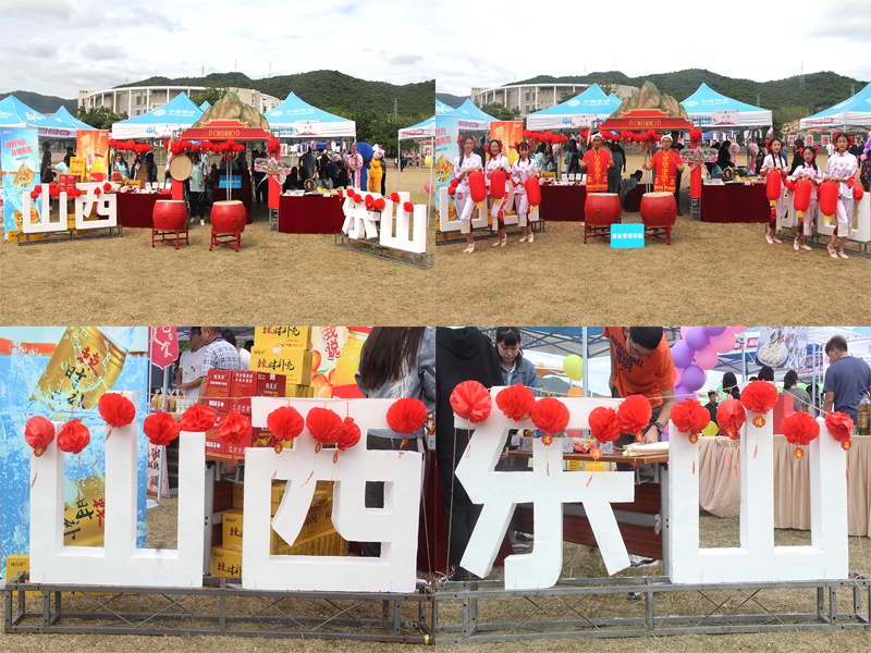 同学们身着特色服装打鼓表演来吸引客人。本次旅业管理学院主要负责“晋”“鲁”两地特色美食,山东印象、德州扒鸡、山东大葱、蜜三刀、莱芜香肠、山西沙棘汁、山西刀削面、山西串串等等一系列特色小吃数不胜数。同时潍坊风筝、中国剪纸等一系列当地非物质文化遗产让我们感受不同的文化底蕴。