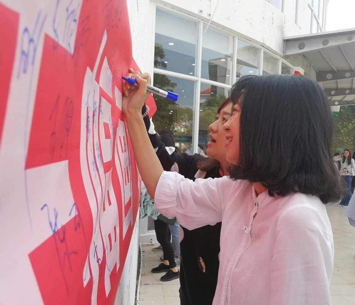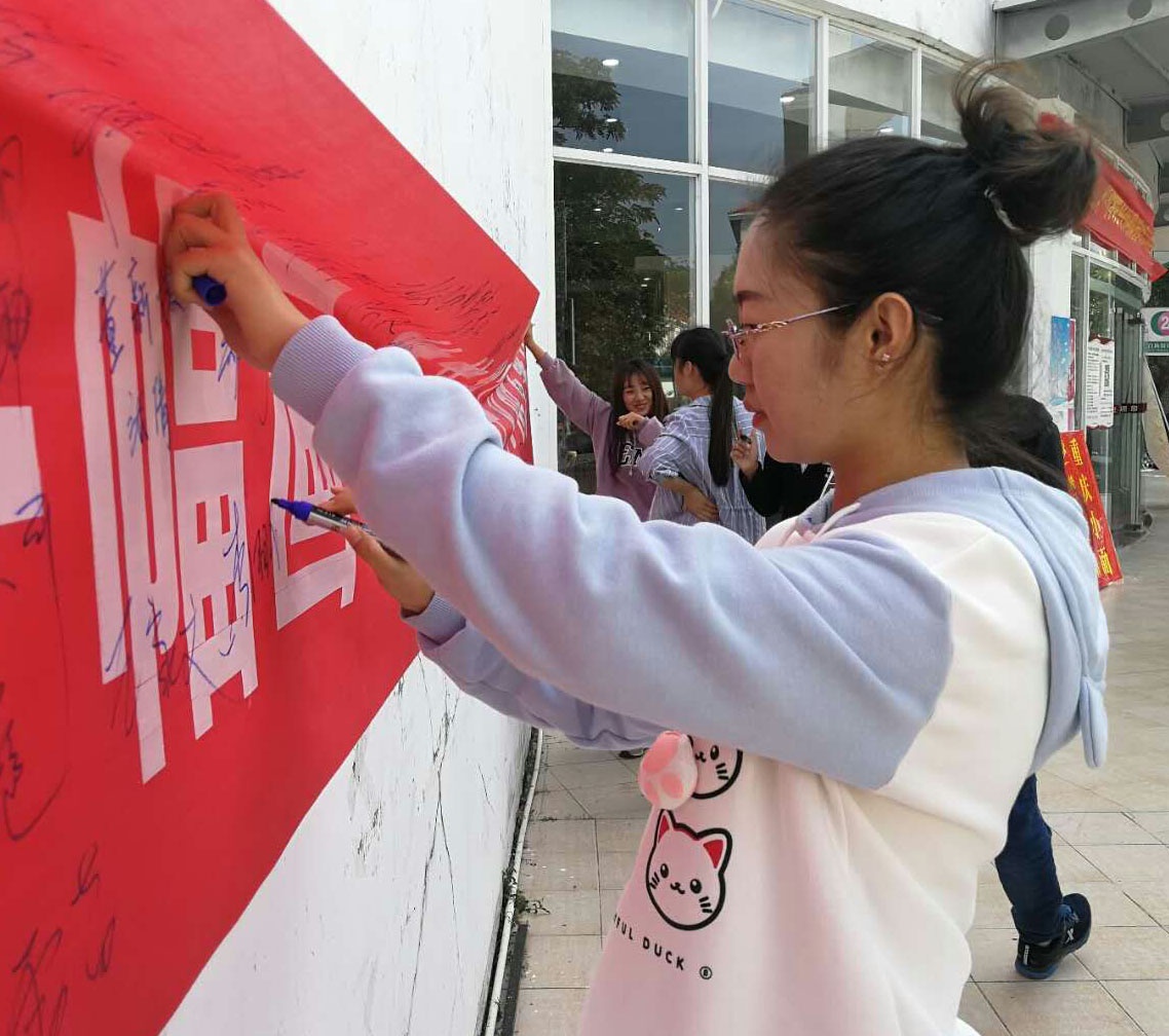 12月25日中午,我院在南区食堂门口举行了"浓墨重彩旅业千幅画,莘莘学子文明万卷诗"的文明大活动的签字仪式,此次签字活动由我院分工会联合学院分团委共同举办,我院教师、思想导师带领在校学生参加了本次活动。