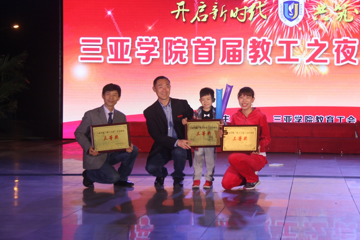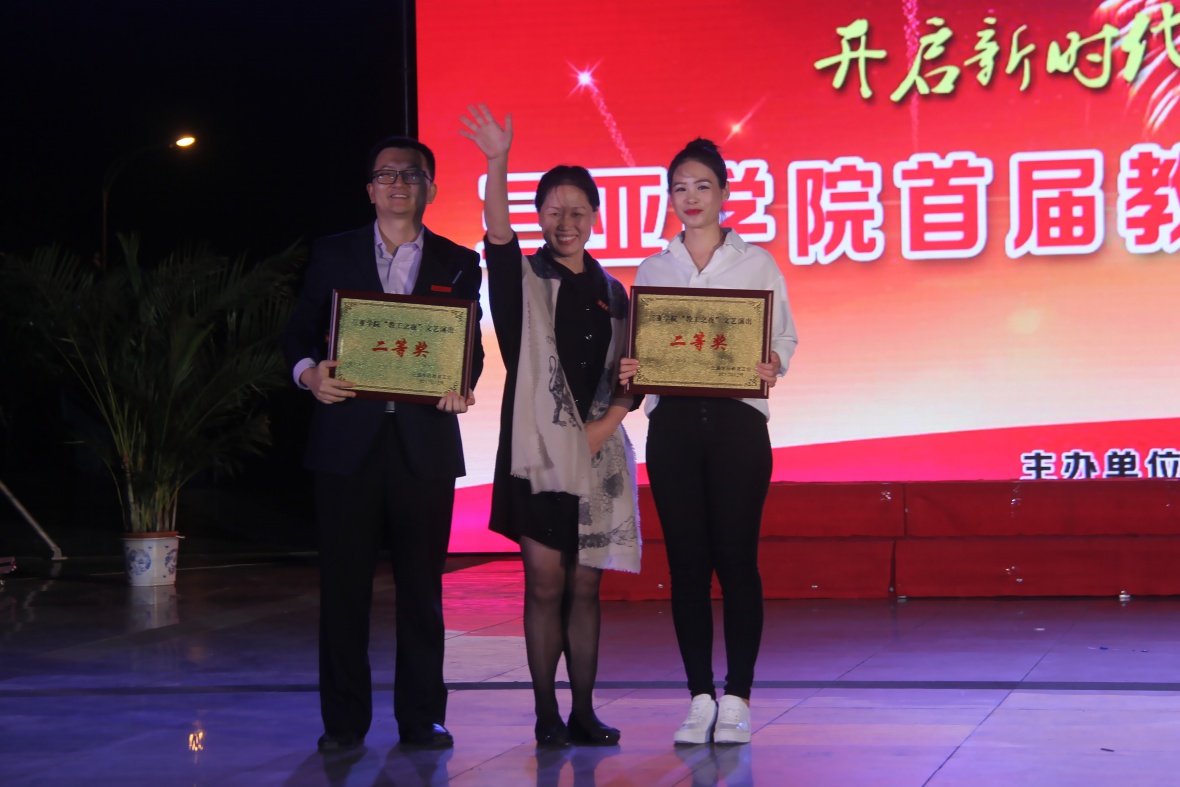 表演结束后,主持人根据评委评分公布了本次晚会的一等奖、二等奖、三等奖及优秀组织奖获得名单,并颁发证书。一等奖:音乐学院,二等奖:机关、校园管理部,三等奖:教工健身操俱乐部、理工学院、人文与传播学院,优秀组织奖:艺术学院、体育学院、法社学院、旅业学院。