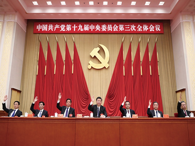中国共产党第十九届三中全会由中央政治局主持,中央委员会总书记习近平作了重要讲话。面对复杂多变的国际形势、艰巨繁重的国内改革发展稳定任务,中央政治局全面贯彻党的十九大和十九届一中、二中全会精神,高举中国特色社会主义伟大旗帜,坚持以马克思列宁主义、毛泽东思想、邓小平理论、“三个代表”重要思想、科学发展观、习近平新时代中国特色社会主义思想为指导,不忘初心、牢记使命。