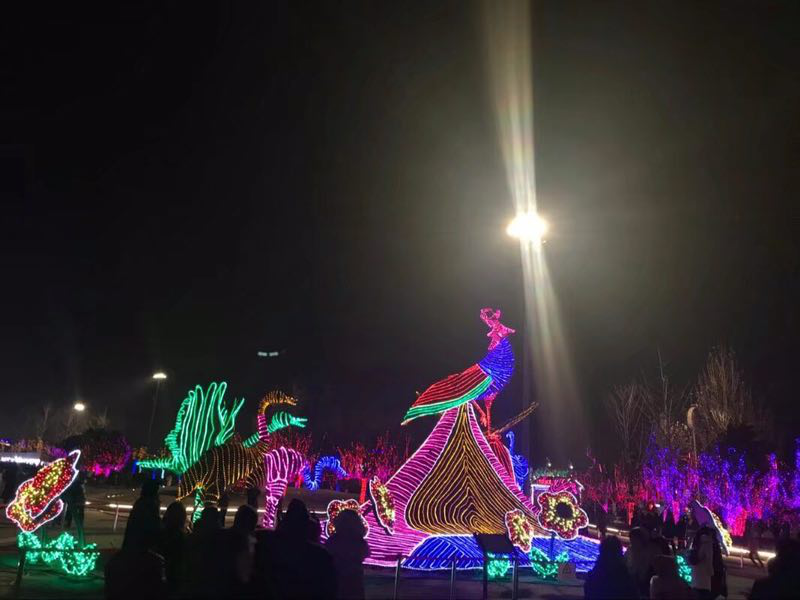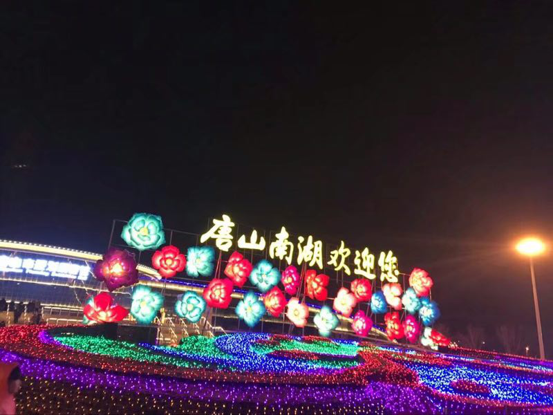 2018唐山南湖春节灯会自2018年2月2日至3月15日(农历腊月十七至正月二十八)在唐山南湖生态旅游风景区内举行,本届灯会以“走进新时代,美好唐山年”为主题,会场设置在景区内丹凤朝阳广场、国内园、龙山沿线等区域,主要由“涅槃飞跃,美丽唐山”、“奇幻世界,欢乐唐山”、“园中盛景,人文唐山”、“浪漫湖心岛”、“龙山南路灯光带”五大板块组成。今年的灯会无论在规模上还是数量上都超越了去年,其中不少大型灯组与时俱进,带有鲜明的中国风、唐山韵、民俗味、人文情:有融合中国特色元素的鼓舞中华、龙马精神,有代表唐山人文发展的人文唐山、冀东粮仓,有独具特色的水上灯组唐王东征、十二生肖划龙舟,有充满童趣的侏罗再现、冰雪奇缘,有弥漫着粉红气息的浪漫爱情、璀璨钻石,五大灯会展区共计99组特色彩灯,分别呈现出不同的特色符号,满足不同人群的赏灯需求,可谓亮点纷呈。所有灯组光源全部采用LED灯具,环保节能,绿色低碳。
