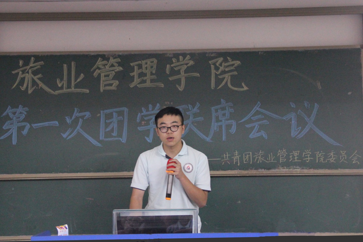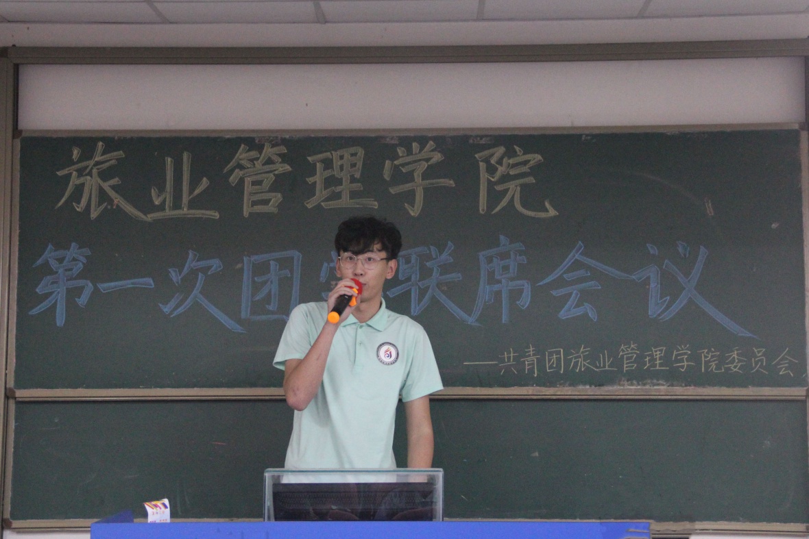 学生会负责人简单介绍学生会各部门的职责和任务。学生会主席肖自博提到,无论哪个组织,共同存在的意义都是为了旅业管理学院的发展,强调各组织与各部门的相互协调,保证每一次的活动都能顺利举办,跟随“旅业学生会,永远不后退”的口号稳中求进。
