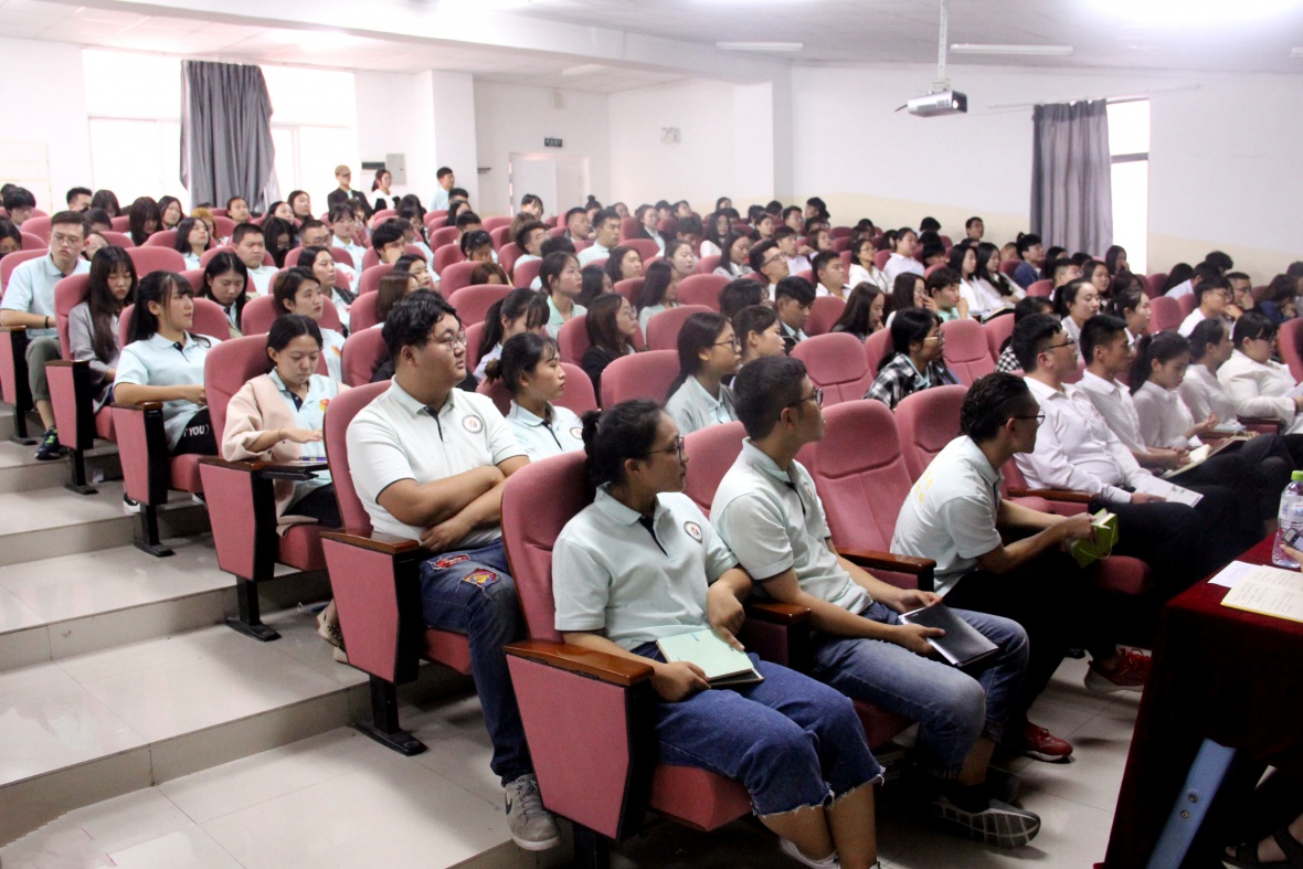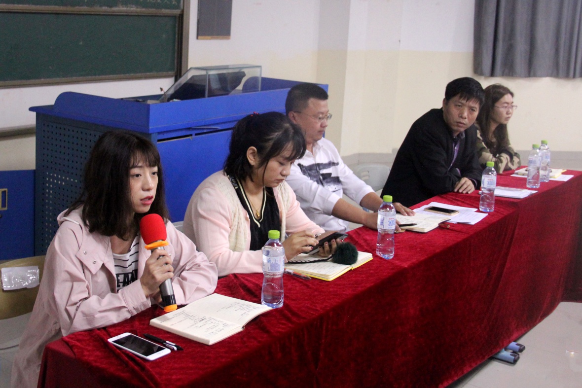 学生组织发言完毕后,王翔书记向大家介绍担任我院学业指导工作的王水卿老师。王水卿老师希望我院同学们在今后的学习中如遇到任何问题,一定要积极与老师沟通,积极向上的心态也尤为重要。课余时间可以去图书馆里多读书,读好书,融身在良好的学习氛围中,培养学习兴趣。并对15级实习结束已经返校并在今年需要考研的同学表明,有任何考研相关问题都可以向老师询问,并要求学习部配合,为有需要的同学们搭建一个互助学习的小组平台。