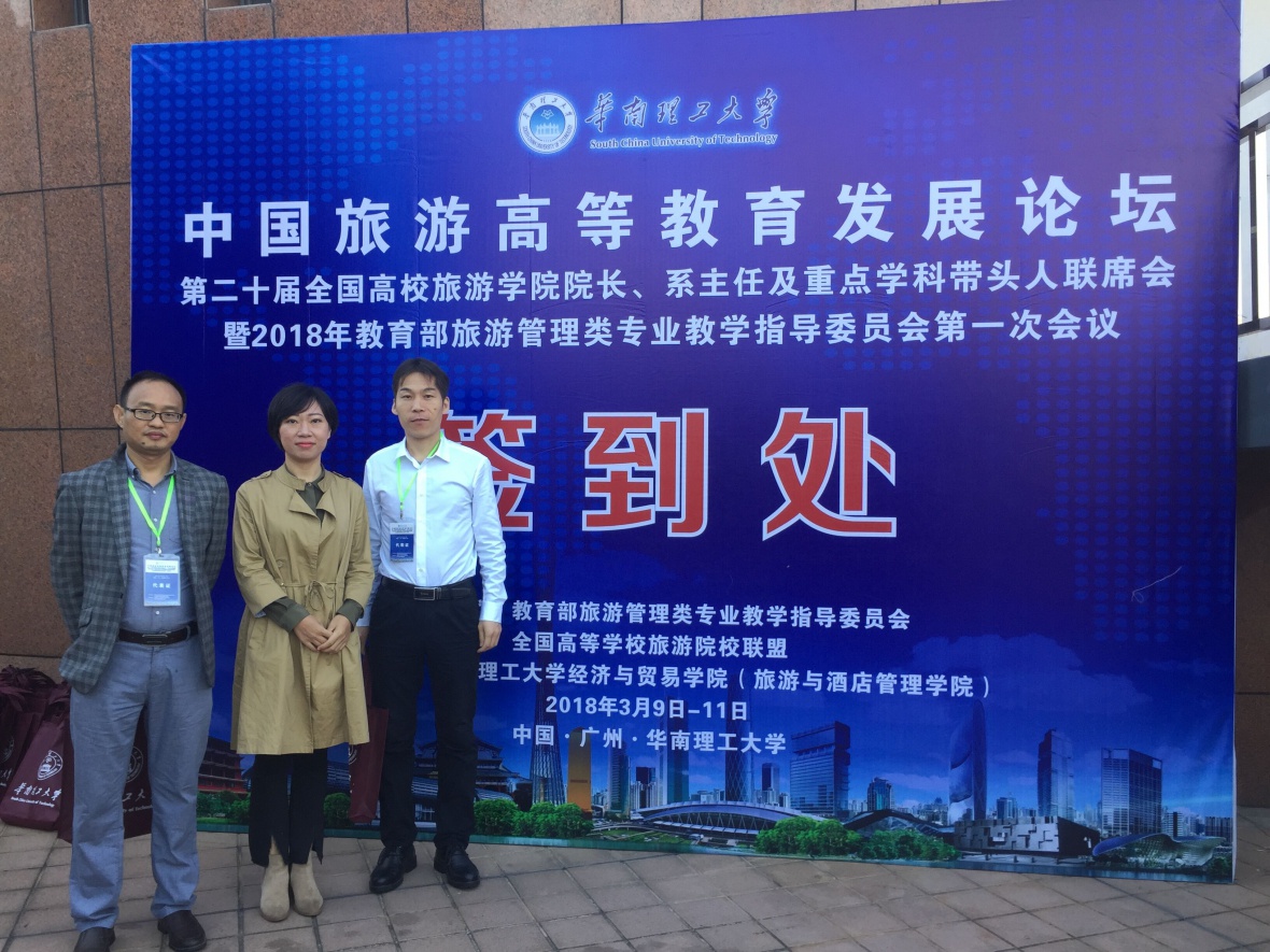 2018年3月9日至11日,我院雷春老师,李佳老师赴广州参加由教育部旅游管理类专业教学指导委员会组织,由华南理工大学承办的中国旅游高等教育发展论坛。会议共分为两个大的议题,第一,国内旅游学界专家进行主题发言;第二,分会场小组讨论。与会专家包括中山大学保继刚教授、湖北大学马勇教授、云南大学田里教授等学界带头人。