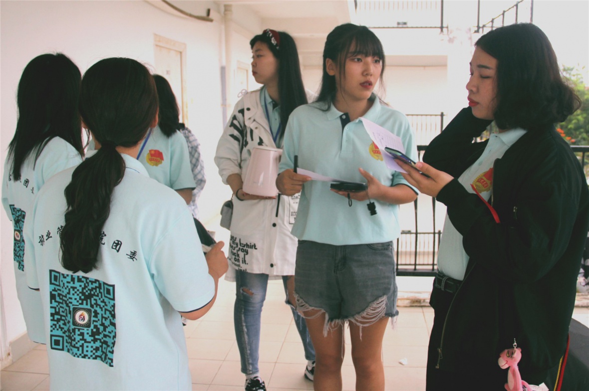 查寝工作以和组织的部门为单位小组,由负责人带领进行区域化查寝。此时飘起的毛毛细雨,夹带着几丝凉意,虽为查寝增添了不少困难,但是丝毫没有影响查寝的质量,仍不失礼貌。轻轻地敲一下门,一句“同学你好,旅业团学组织查寝,方便开一下门吗?”拉近了距离,为旅业学生组织树立了良好形象。
