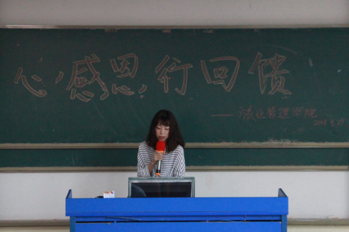 3月29号下午一点,我院在书知楼1208教室召开2018年“心感恩,行回馈”主题勤工会议。旅业管理学院党总支副书记王翔,思想导师石玲、王曦茜、李湘婷老师出席现场,为“心感恩、行回馈”公益服务实施方案宣讲保驾护航。