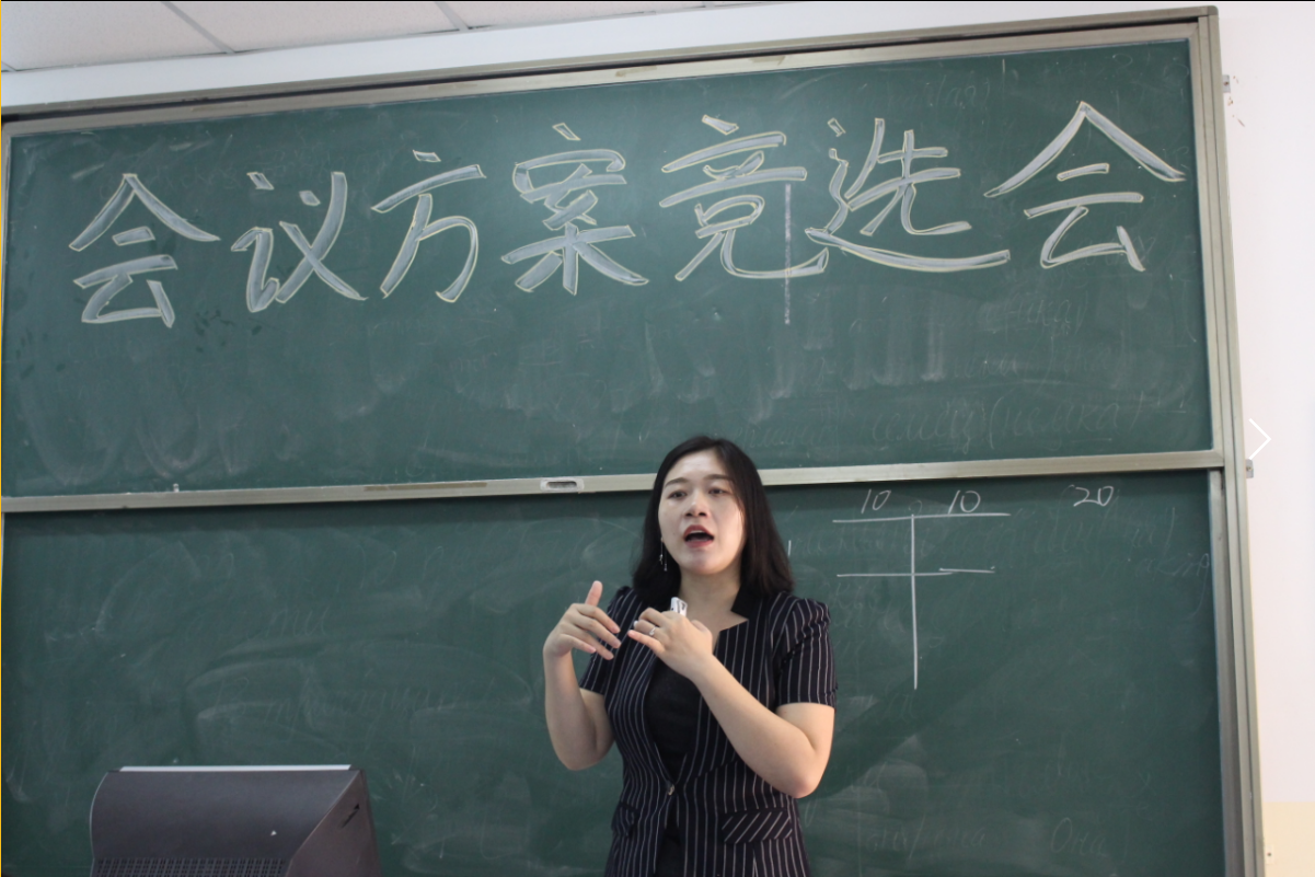 4月2日10时10分,我院会展1601班在会议运营管理课朱俭老师的带领下于书知楼1405教室开展模拟会议方案竞选会。