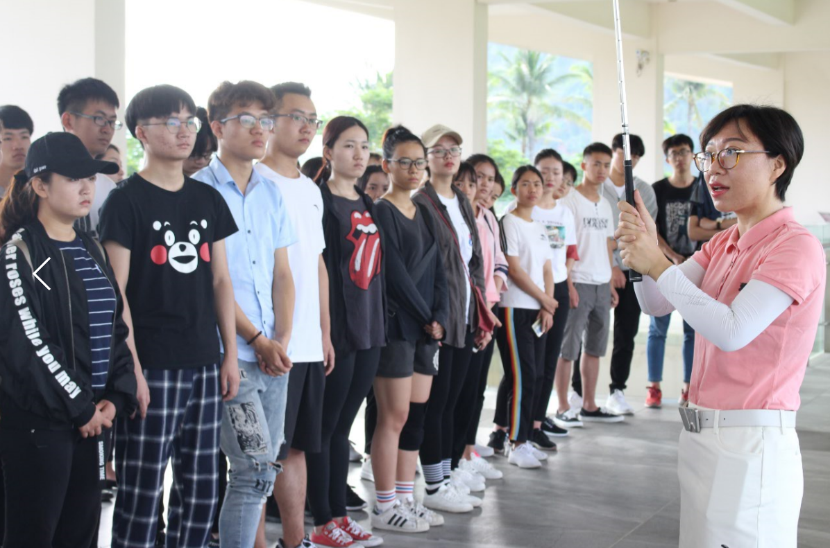 李佳老师介绍道:“此次高尔夫体验课体验对象不仅是会展新生,我院承办了整个9159金沙游戏场5000人新生的高尔夫体验,其用意一方面在于想让更多的人了解高尔夫这项运动,带到学生运动的热情,加强学生身体素质。另一方面希望培养学生的业余爱好,而不是整天待在宿舍,沉迷游戏,沉迷追剧。”