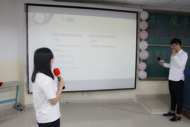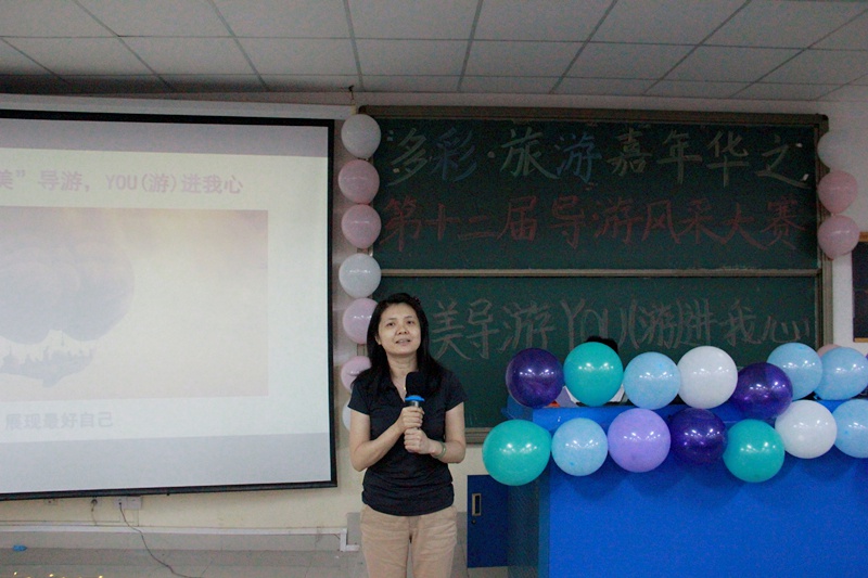 4月25日下午,第十二届旅业多彩嘉年华导游风采大赛决赛在书知楼1208教室隆重举行。本次大赛由我院主办,旅行社管理专业教室承办,旅行社专业主任彭文静,邮轮专业主任余有勇、余燕伶、胡雨凯、于淑艳等老师担任大赛评委。本次导游大赛经过层层选拔,最终有十位优秀选手进入总决赛。
