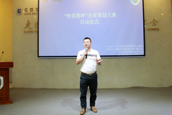 4月27日晚,续24日初赛中的激烈较量,我院在白鹭苑酒店举办的会展策划大赛决赛再度强势来袭。本次比赛由我院与海南快思图商务会展有限公司共同举办,旨在为我院会展学子提供展示交流的平台。活动到场嘉宾有:快思图商务会展有限公司总经理柳椿飞、副总经理尤志彬,项目总监邱邵文,策划副总监段强,我院党总支副书记王翔、会展专业主任雷春、会展专业老师朱俭、卢新新、蒋倩等。
