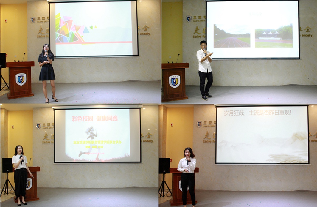 初赛中胜出的六个主题:“三亚汉服文化节”、“抖音线下party”、“彩色跑”、“光阴的故事”、“婚纱秀”、“性文化节”,在本次比赛中再次完善了本组的演示稿件,对活动内容和主题特色进行了明确解说。对于初赛中活动效果不突出的问题,更改成效十分显著。在现有网络资源的情况下,通过各类时下流行的热门软件来寻找符合主题的展示效果,方便讲解活动内容,也让在场人员更直观地感受活动带给大家的乐趣和震撼。场上的选手如同箭在弦上一般,时刻紧绷,高度重视。值得一提的是比赛途中穿插的精彩舞蹈和弹唱节目让现场的紧张气氛稍有缓和,也向评委们展示了我院学子的才华横溢、非同凡响。