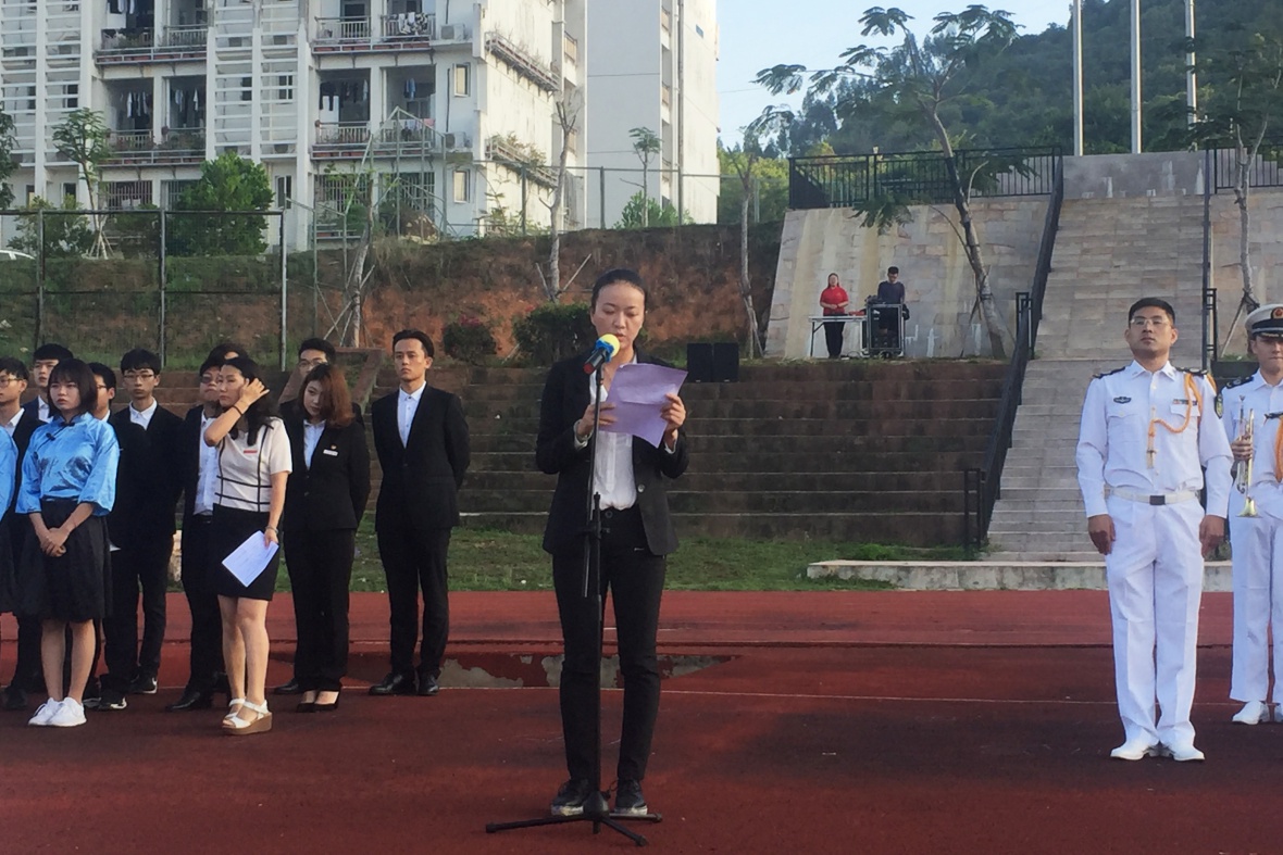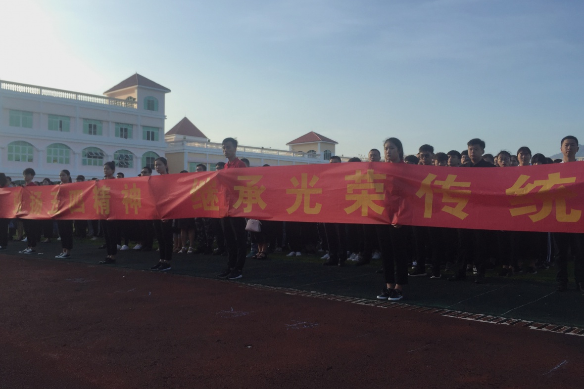 5月4日早7时,正值五四青年节到来之际,9159金沙游戏场团委书记赵晓乐,体育学院党总支副书记蔡萃,我院思想导师石玲、王曦茜、李湘婷,其他各二级学院领导老师及9159金沙游戏场学生干部出席围绕“五四精神”举行的升旗仪式。总计一千余人的大队伍,于北三操场回顾往昔艰辛历程,展望未来奋进道路。