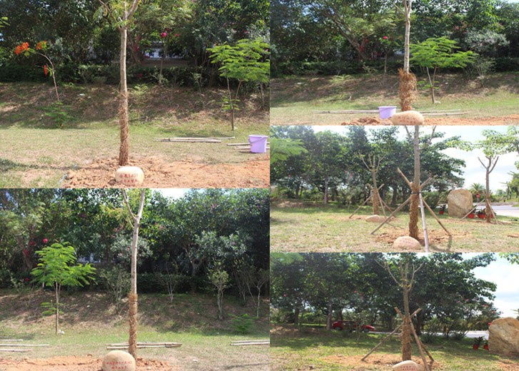 凤凰木的种植,是毕业学子不说再见的离别。他们扛铁锹,提水桶,感受泥土湿润,感谢这片土地的培育。抚摸这棵亲手种下的凤凰木,它会随着学子们的离去慢慢生长,长成参天大树,开出一树火红,而这,都是他们与这片土地的联系、对这个学校的告白,丝丝缕缕的温情,淌在心间。种植结束,我院学生与杨玉英院长进行合影留念,用照片的形式记录下这最温情的时刻,而手中紧攥的院旗,又是满腔无法言述的不舍表达。