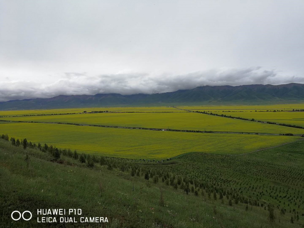 我们先到了门源油菜花,七月去的我们正好赶上了油菜花盛开的旺盛时节,五十万亩的油菜花景色与当地的蓝天白云、高山流水、林海草原和独有的民居、蜂农等交相辉映,变幻出一道道独具特色的迷人风光。
