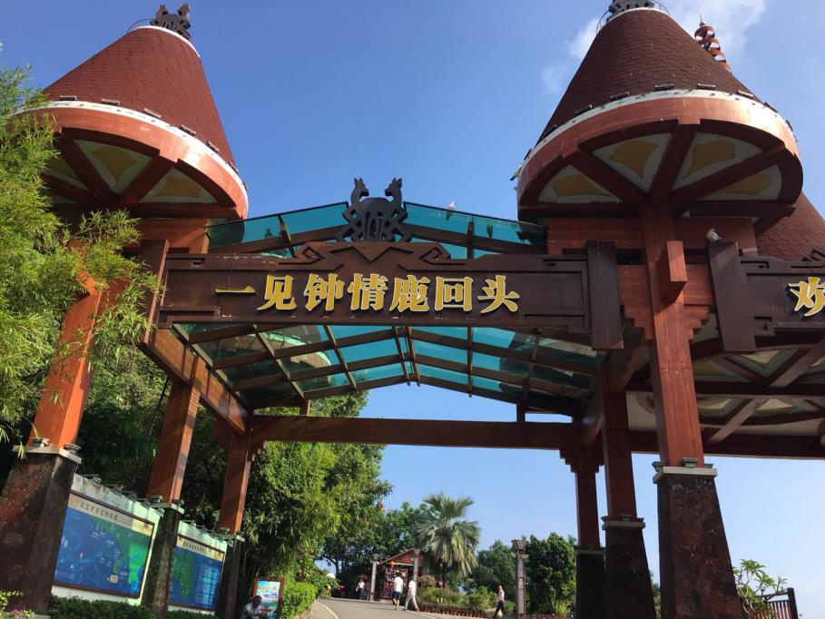 鹿回头山顶公园,位于三亚市区南边3公里处的三面环海的海边小山,主峰海拔275.1米。鹿回头因一个美丽动人的传说而得名。"鹿回头"也因此名扬于世。现在,鹿回头山顶已建设成一座美丽的山顶公园,并根据美丽的传说在山上雕塑了一座高12米、长9米,宽4.9米的巨石雕像。三亚市也因此被人们称为"鹿城"。这里山岬角与海浪辉映,站在山上可俯瞰浩翰的大海,远眺起伏的山峦,三亚市全景尽收眼底,景色极为壮观。鹿回头公园曲径通幽,顺着山势建有哈雷慧星观测站、白色的听潮亭、红色的观海乾、情人岛,此外还有猴山、鹿舍、黎家寮房、龟鳖天堂、游鱼仙池等景点供观赏,使游人乐而忘归。鹿回头山上鲜花四季盛开,姹紫嫣红,异彩纷呈,更可喜的是,还可以品尝到海南子中的珍品--红椰子。