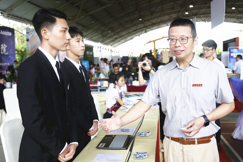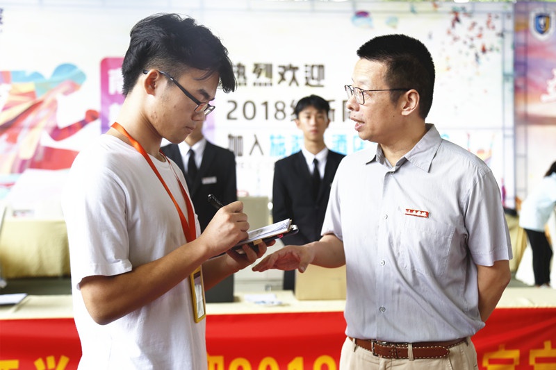 在迎新第一天,陆丹校长一行来到我院进行视察工作,并对我院的迎新工作进行了相关指导。陆丹校长指出:“应海南岛建设30周年,旅游与酒店管理学院整合资源最终完成融合,犹如五指并拢,力量更强。希望新生、老生能以‘深圳神话’之精神,抓紧时间、重视效率,为海南岛建设作出贡献。”