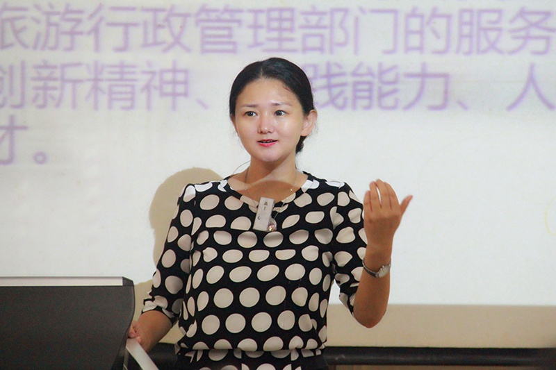 王老师针对我院旅游专业概况、学科建设取得的成就、学生主要就业方向、毕业生就业状况及专业前景等做了详细介绍。她还介绍了旅游管理专业人才培养目标、课程设置、核心课程、实践教学项目等,让新生了解职业前景,提前做好职业生涯规划,对同学们今后的学习、生活提出了明确要求和希望,让新生们加深了对旅游专业的了解。