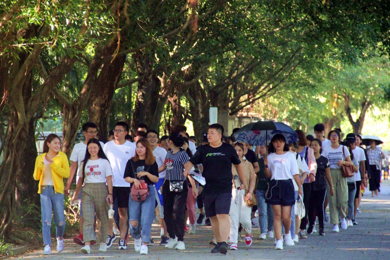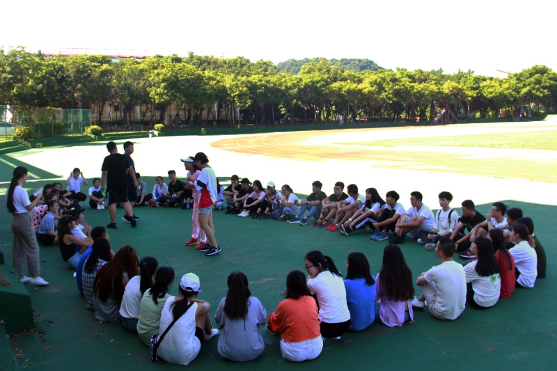 参观了照相机博物馆、海南南海船舰科技馆,路过了栽着满满纪念的凤凰林,途经倒映着日落广场美景的人工湖,最后大队伍抵达了最终目的地——北三操场。操场上,大家围坐在一起,带领队伍的学生干部们设计了一系列熟悉又新颖的小游戏,希望让学生们在参与的过程中能展示自己的独特魅力,并竭力发挥合作精神,对个人、对团队重新认识、重新定位。
