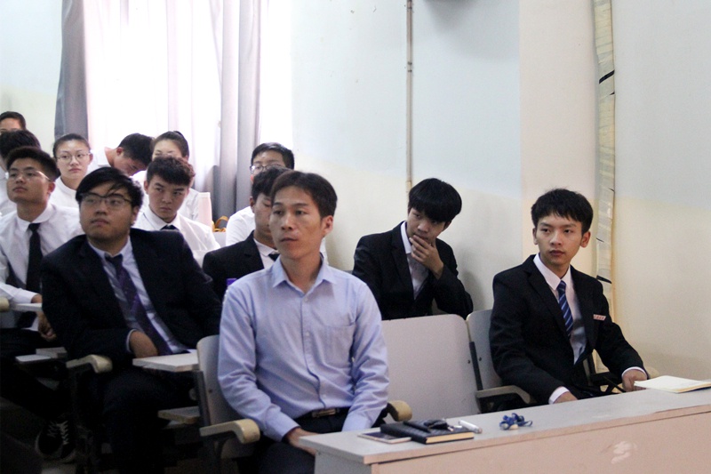 作为酒店行业的一员,骆经理以“One thing will never change in the hotel industry.Guests will always expect great service.”来引出服务态度这一话题,并以“良好的礼仪礼貌、优良的服务态度、丰富的服务知识、娴熟的服务技巧、快捷的服务效率、建立良好的服务关系”为基本的理念,希望同学们可以在学校及以后的工作中将这一理念传承下去。