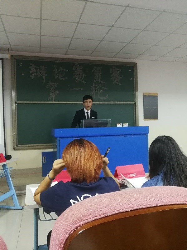 11月3日,学生会学习部在南区书知楼1208教室举办了辩论赛复赛, 担任此次评委为辩论队队长范君海、马煜杰、刘于嘉、徐嘉敏。