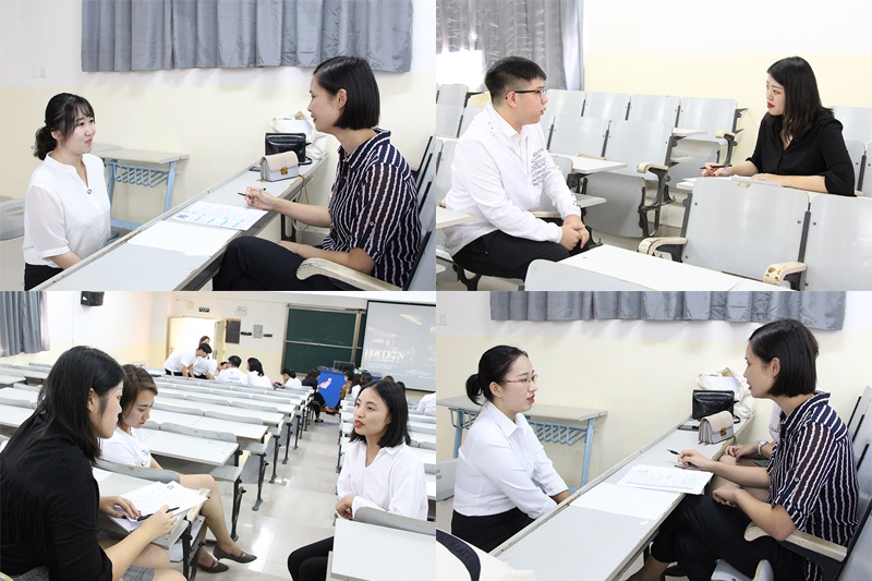 宣讲结束后酒店负责人对有意向的学生进行面试,面试环节主要包括作英文自我介绍、阐述所应聘的岗位及理由、对自己岗位的职业规划等。面试过程中,学生们从容而又认真的回答着问题,彰显了我院学生的自信与朝气。