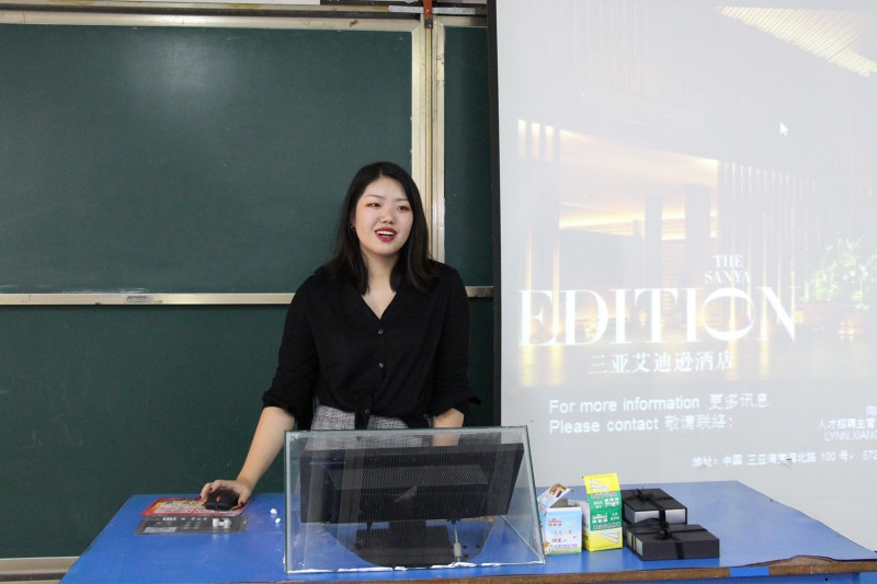 11月7日下午2点,三亚艾迪逊酒店人才招聘主管向喻琳及其团队,于我院书知楼2201进行酒店招聘宣讲,并对有意向的大四学生进行面试,旨在为我院学生提供更好的就业选择。